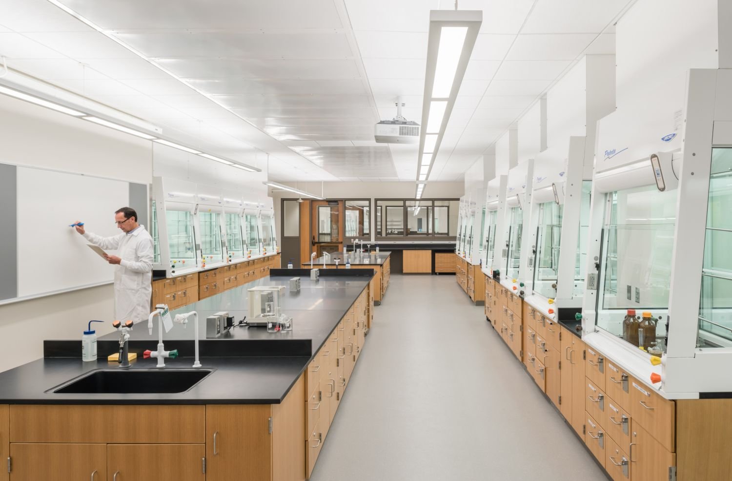 nterior designing for laboratories are way different form rest of the interior designing spaces. With multiple factors to consider and a lot of other terms and condition, Our team take care of the apt interiors for a laboratory. Interiors of a lab are made with multiple rooms, with the adequate space to display the equipment and will multiple cupboards as per the requirement.